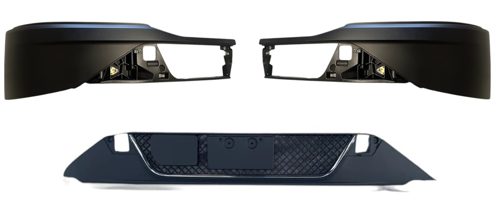 MZ-6984-02 DEFENSA ALERON KW KENWORTH T-680 T680 NUEVA GENERACION 21 22 23 25 LATERAL S/HOYO P/FARO NIEBLA C/REFUERZO Y REJILLA CENTRAL C/FILO CROMADO P/PINTAR